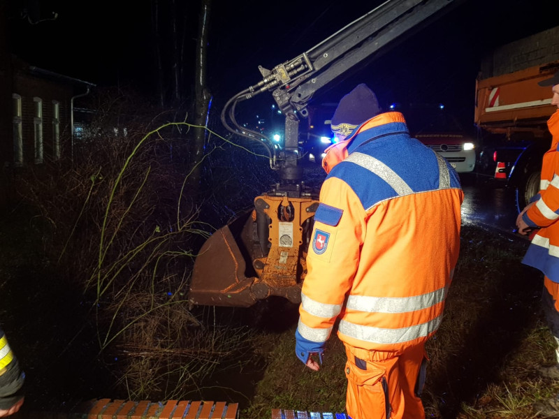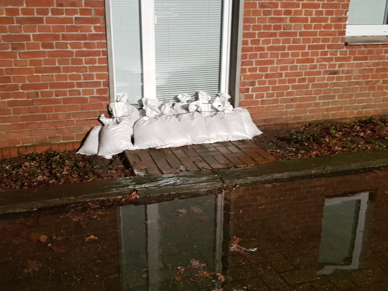 Am heutigen Tage erfolgte der zweite Einsatz für uns. An einem Wohnhaus drohte durch benachbarte Ackerflächen sowie vollgelaufene Gräben das Wasser ins Wohnhaus zu laufen. Wir sicherten mittels Sandsäcke die Türen ab, die dazu gerufene Strassenmeisterei hat mit ihrem Bagger den Graben frei geschaufelt.