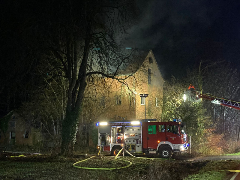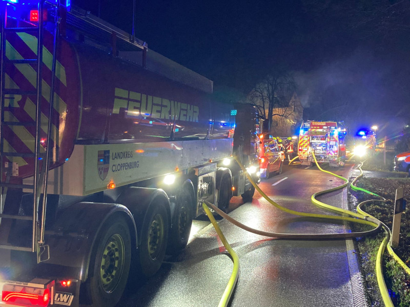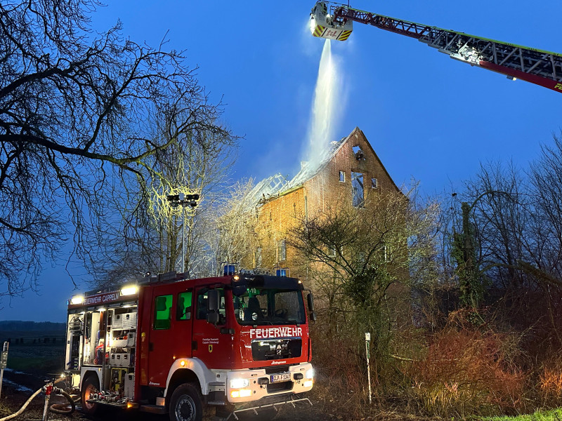 Am 06.01.2024, gegen 04:45 Uhr, geriet aus bislang unbekannter Ursache ein leerstehendes dreistöckiges Gebäude in der Cappelner Straße in 49692 Cappeln/OT Sevelten in Brand. Beim Eintreffen der Feuerwehr und der Polizei stand das ehemalige Wirtschaftsgebäude bereits in Vollbrand und Flammen schlugen aus dem Dach aus. Für die Dauer der Löscharbeiten musste die Cappelner Straße in Bereich des Brandortes voll gesperrt und der Verkehr abgeleitet werden. Die örtliche Feuerwehr Cappeln, Elsten, Schwichteler und Cloppenburg war mit insgesamt zehn Fahrzeugen vor Ort und konnte den Brand löschen. Es entstand ein geschätzter Sachschaden in Höhe von 50.000 Euro. Der Brandort wurde seitens der Polizei Cloppenburg beschlagnahmt. Die Ermittlungen zur Brandursache dauern an.