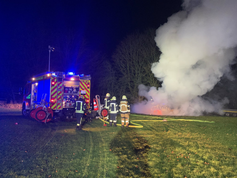 Am Freitag, den 01. März 2024, gegen 01:51 Uhr, geriet aus bislang unbekannter Ursache ein abgestellter PKW in der Straße "Am Dorfplatz" in Cloppenburg in Brand. Das Feuer konnte durch die Kräfte der Feuerwehr, welche mit drei Fahrzeugen vor Ort war, gelöscht werden. An dem Fahrzeug entstand wirtschaftlicher Totalschaden.