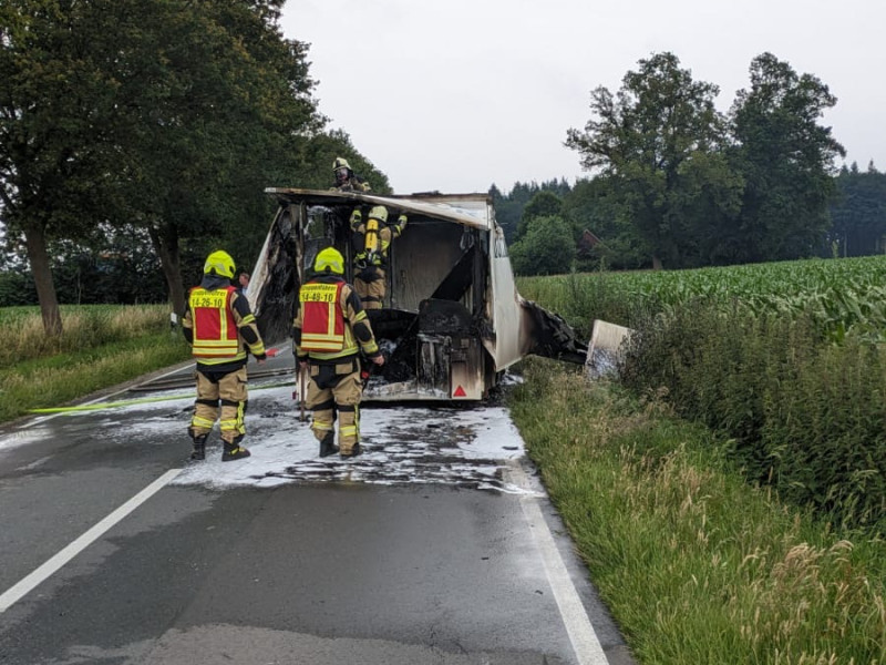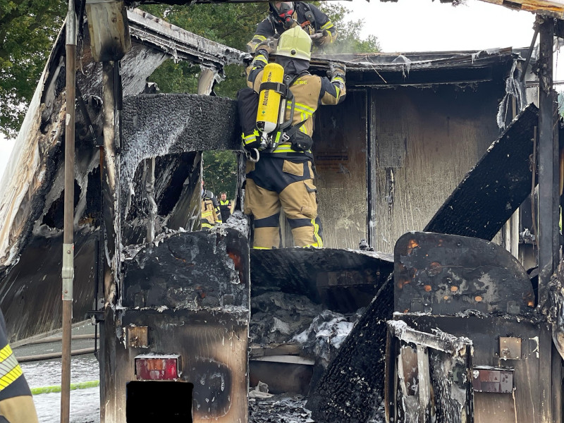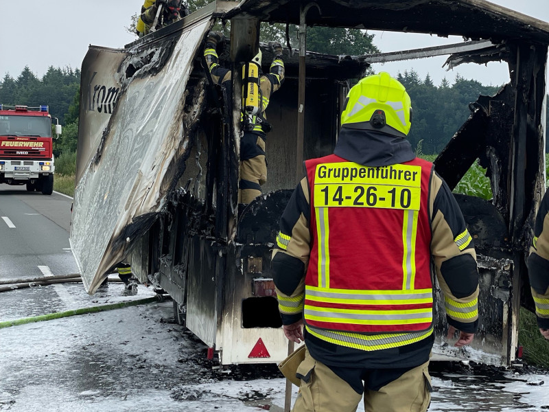 Abschließend kann man sagen, durch das beherzte Eingreifen des LKW-Fahrers konnte größerer Schaden verhindert werden. Dieser hatte bei Brandentstehung seinen LKW abgekuppelt und in Sicherheit gefahren.