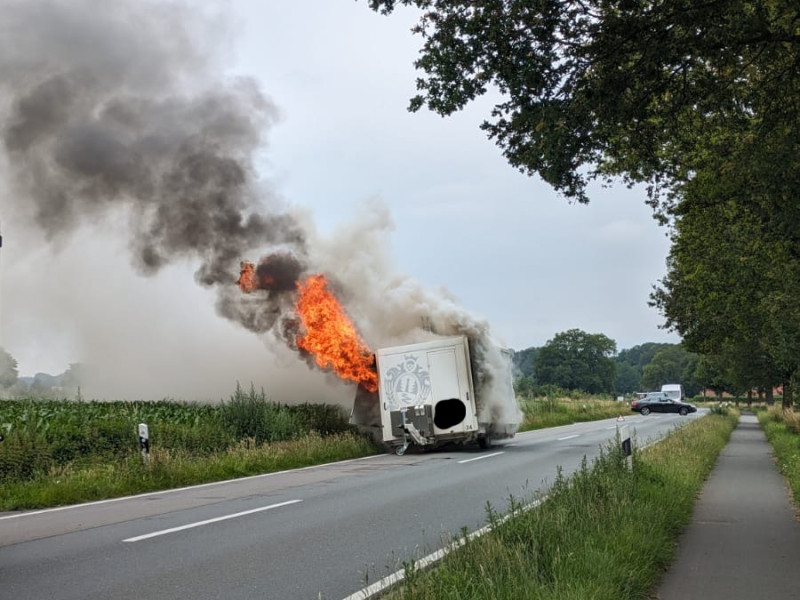 Verkaufswagen steht bei eintreffen in Vollbrand