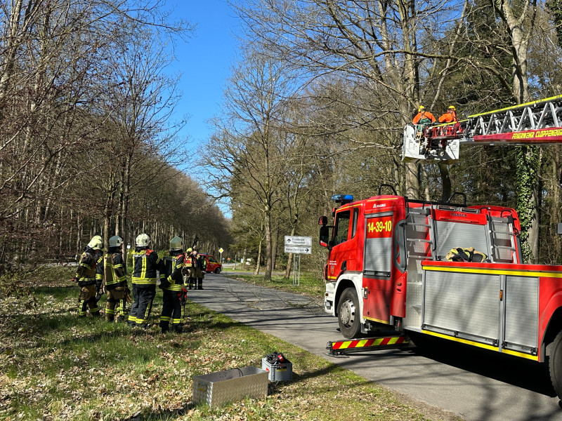 Am Sonntagnachmittag wurden wir zum zweiten Einsatz alarmiert. An der alten Friesoythe Straße droht ein Ast aus einem Baum heraus zu brechen. Mittels Motorsäge und Drehleiter wurde die Schadenstelle beseitigt. Nach einer halben Stunde konnten wir die Heimreise antreten.