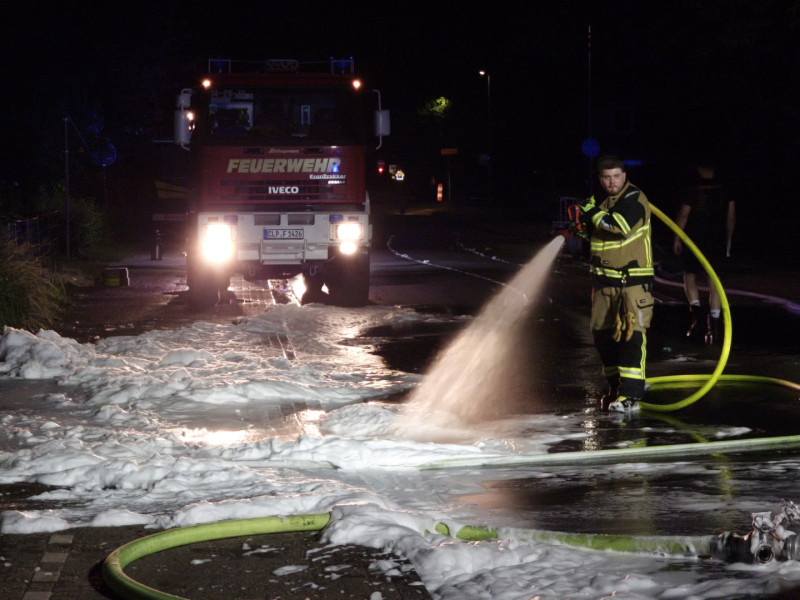 Durch schnellen Löschangriff – unter anderem mit einem Trupp unter Atemschutz und einem C-Strahlrohr – konnte eine Ausbreitung verhindert werden. Besonders hilfreich war dabei das frühzeitig mit ausgerückte Tanklöschfahrzeug (TLF 24/70): Mit viel Wasser aus dem Dachwerfer dieses Fahrzeugs konnten wir ein Übergreifen auf die Werkstatt verhindern und den Brand zügig unter Kontrolle bringen.