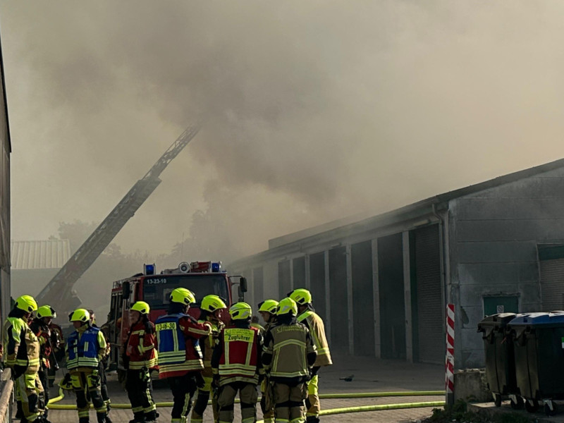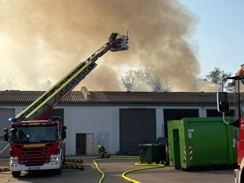 Wir wurden zur Unterstützung angefordert – insbesondere zur Bereitstellung von Löschwasser sowie mit der Drehleiter und dem Großtanklöschfahrzeug. Vor Ort stellten wir einen Angriffstrupp unter schwerem Atemschutz, der im Korb der Drehleiter eingesetzt wurde, um die angrenzende Lagerhalle vor den Flammen zu schützen und eine Brandausbreitung zu verhindern. Diese Maßnahme zeigte Wirkung – die Halle konnte gehalten werden.