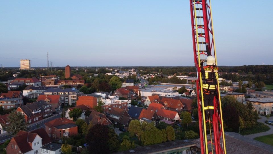 42 Meter – eine beeindruckende Distanz, die es zu überwinden gilt. Einige durften es bereits kennenlernen, für einige war es eine Herausforderung und ein kleiner Schritt über ihren eigenen Schatten. Nehmen wir mal Pascal als Beispiel. Als Quereinsteiger in der Feuerwehr angefangen, packte ihn gestern der Ehrgeiz. Eigentlich leidet er unter Höhenangst, aber gestern hat er die Leiter ganz souverän erklommen. Mit seinen eigenen Worten verfasst: „Das war ein tolles Gefühl, ihr nehmt mir die Höhenangst.“ – auch schöne Worte.