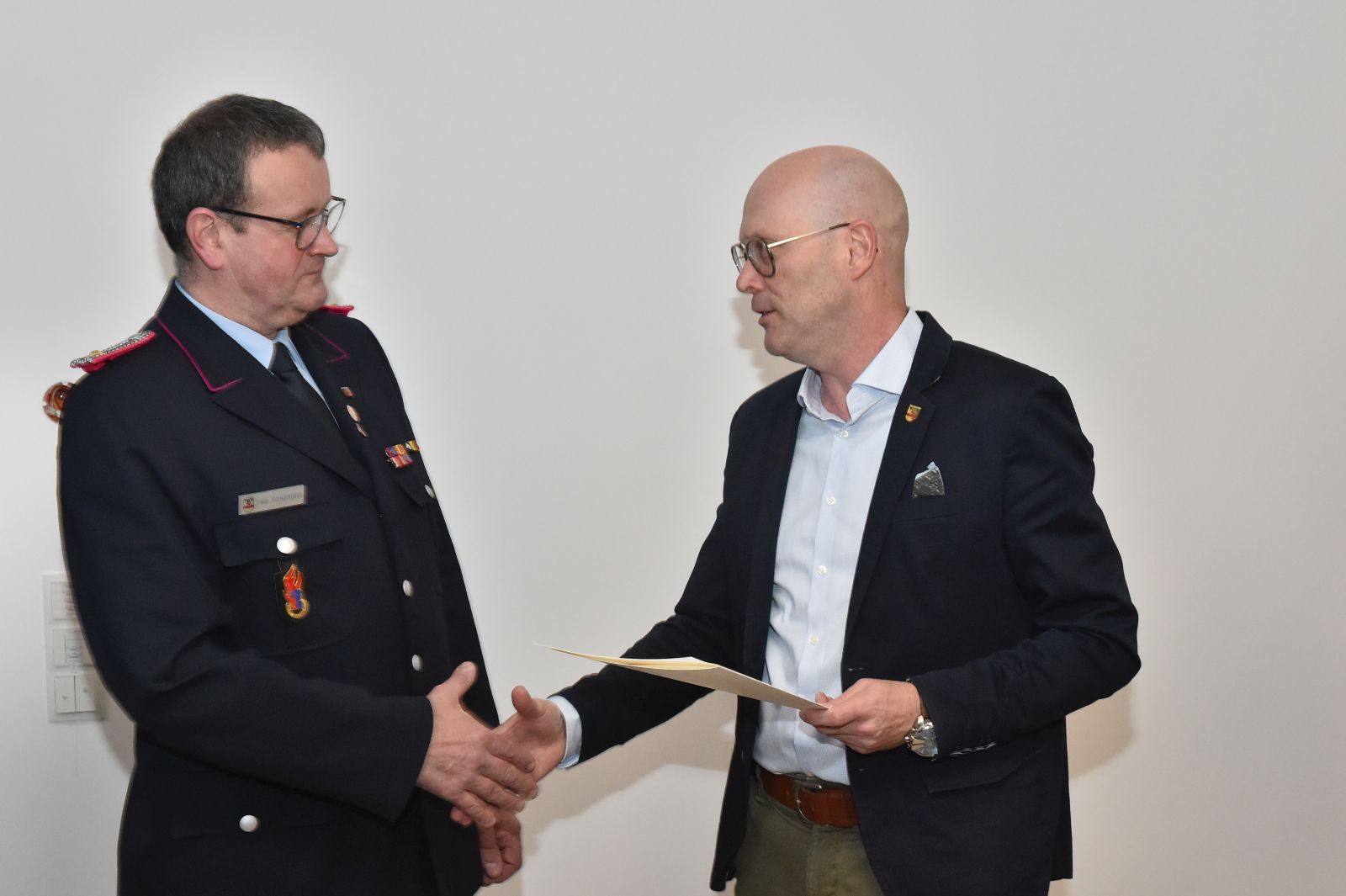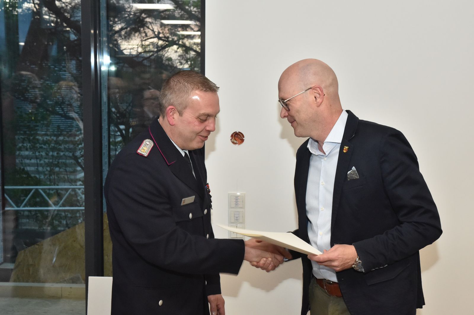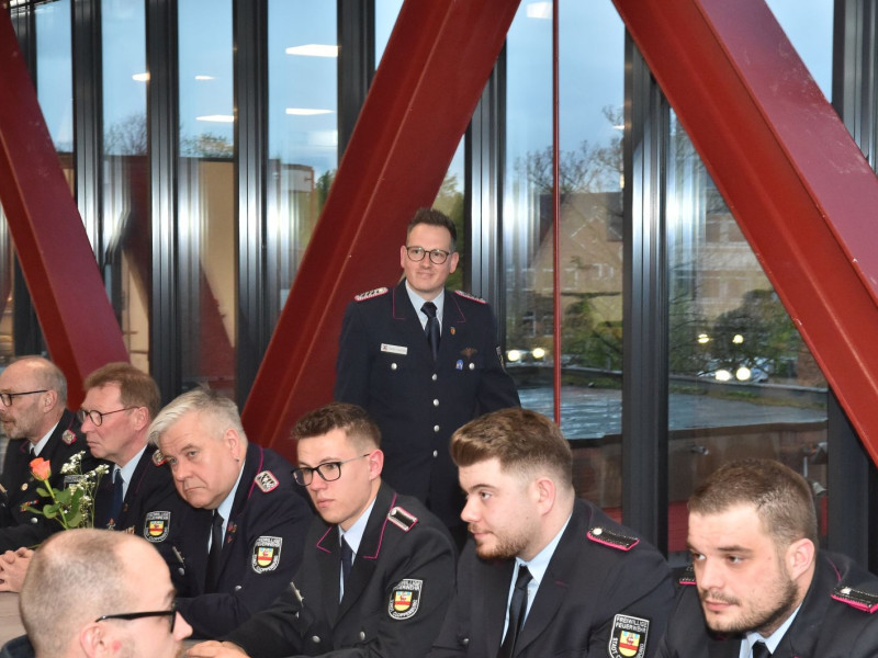 Der Bürgermeister war da, und wir waren alle schick in Uniform. Drei Kameraden galt es für langjährige Dienste in der Feuerwehr zu ehren. Der erste feierliche Anlass im neuen Versammlungsraum.