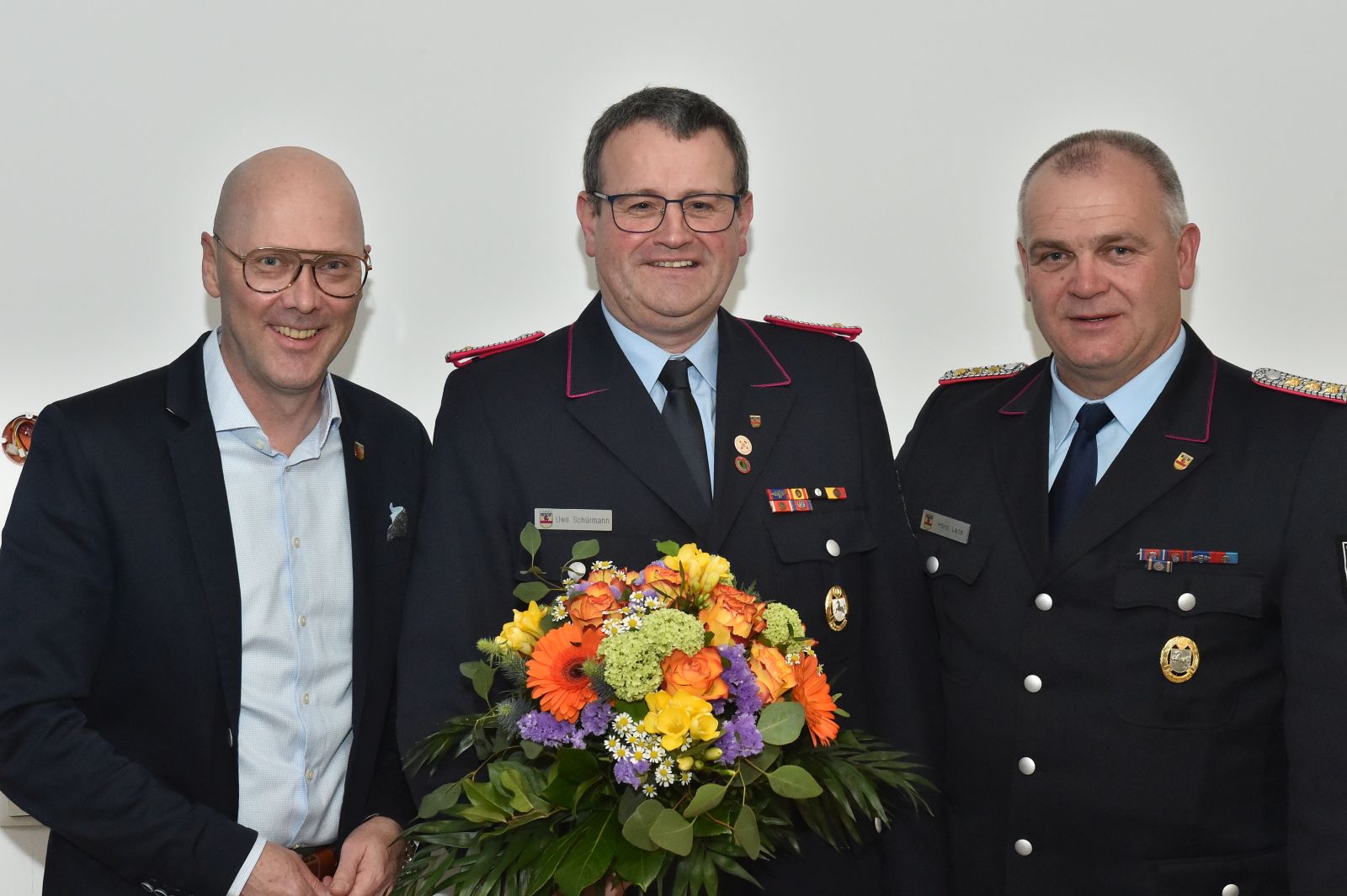 Uwe Schürmann, Ulli Lade und Dominik Leuschner haben alle einen ähnlichen Weg in der Feuerwehr eingeschlagen, fast schon einen klassischen Weg. Sie begannen in der Jugendfeuerwehr und traten dann in den aktiven Dienst ein. Ulli Lade und Uwe Schürmann vor 40 Jahren, Dominik Leuschner vor 25 Jahren. Ulli und Dominik waren da 10 Jahre alt. Als Söhne von Feuerwehrführungskräften konnten sie es wohl kaum erwarten, dabei zu sein. Warum Uwe erst mit 13 Jahren eintrat, ist uns unklar. Klar ist aber, besser "spät" als nie.