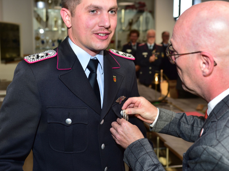 Alle Kameradinnen und Kameraden waren in Uniform erschienen, und man merkte sofort, es sollte ein besonderer Abend werden. Ein Abend für verdiente Kameraden. Bürgermeister Neidhard Varnhorn war gekommen, ebenso Ordnungsamtsleiter Dietmar Ruhe. Die Stimmung war gelöst, die Laune bestens.