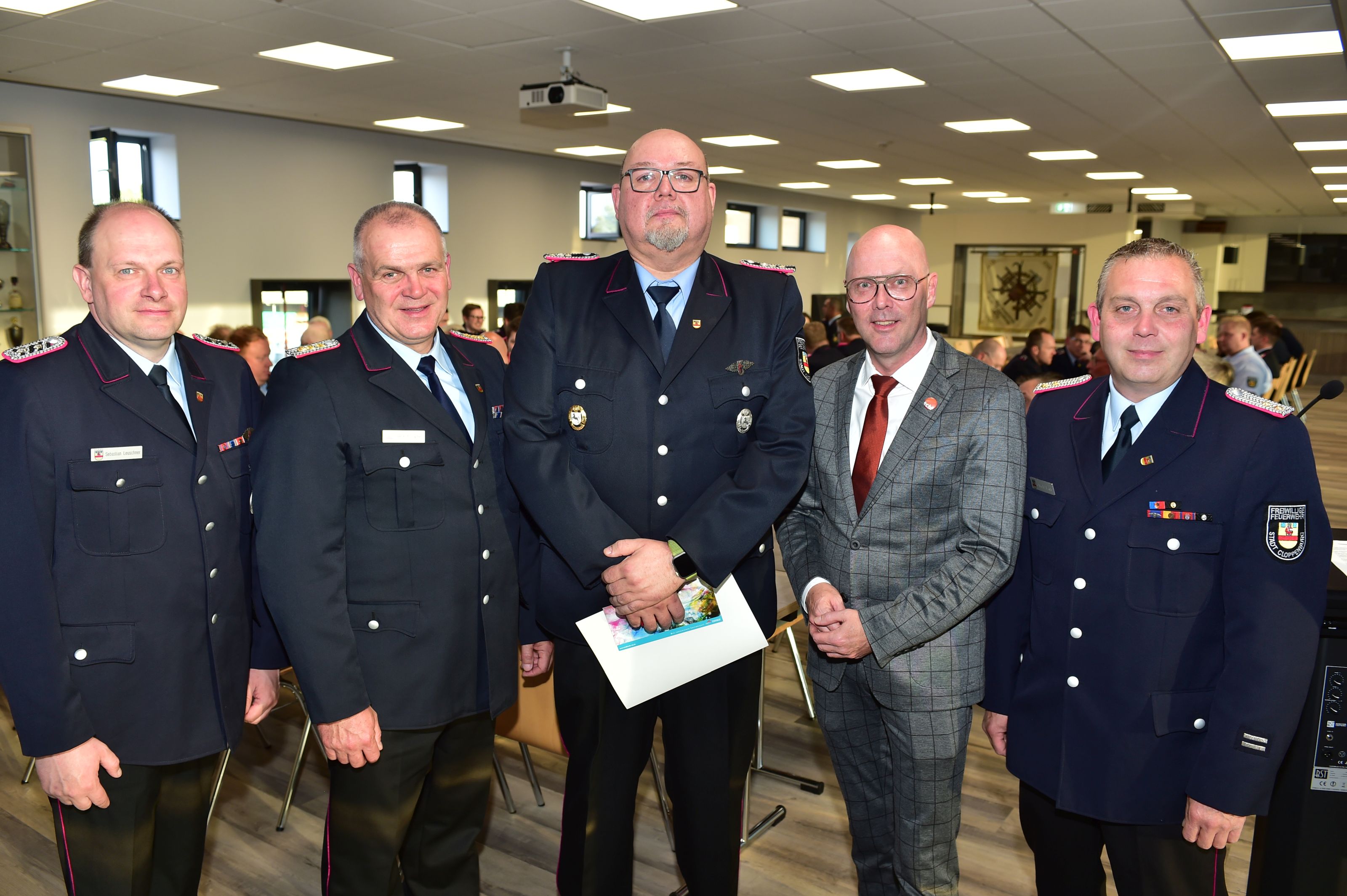 Im Anschluss folgte die Ehrung von Frank Brümmer mit dem Niedersächsischen Feuerwehr-Ehrenzeichen für 40 Jahre im Dienst. Seit 1990 ist Frank in der Einsatzabteilung, und von 2002 bis 2015 war er Atemschutzwart – eine Aufgabe, die er mit besonderem Engagement ausgefüllt hat. „Brümmi“ und seinem damaligen Mitstreiter haben wir zu verdanken, dass wir heute eine erstklassig ausgestattete Atemschutzgerätewarte unser Eigen nennen. Mit seiner ruhigen, zuverlässigen Art ist er bis heute eine große Stütze der Feuerwehr. Besonders nach seiner familiär bedingten Pause ist es schön zu sehen, dass „Brümmi“ wieder regelmäßig mit dabei ist.