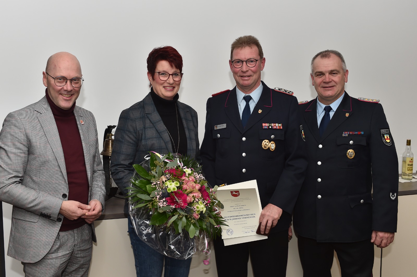 In einer besonderen Veranstaltung im Feuerwehrhaus Cloppenburg wurden vier verdiente Mitglieder der Freiwilligen Feuerwehr für ihre langjährige und engagierte Mitgliedschaft ausgezeichnet. Dabei erhielten sie Ehrungen für 50, 40 und 25 Jahre Dienstzeit.