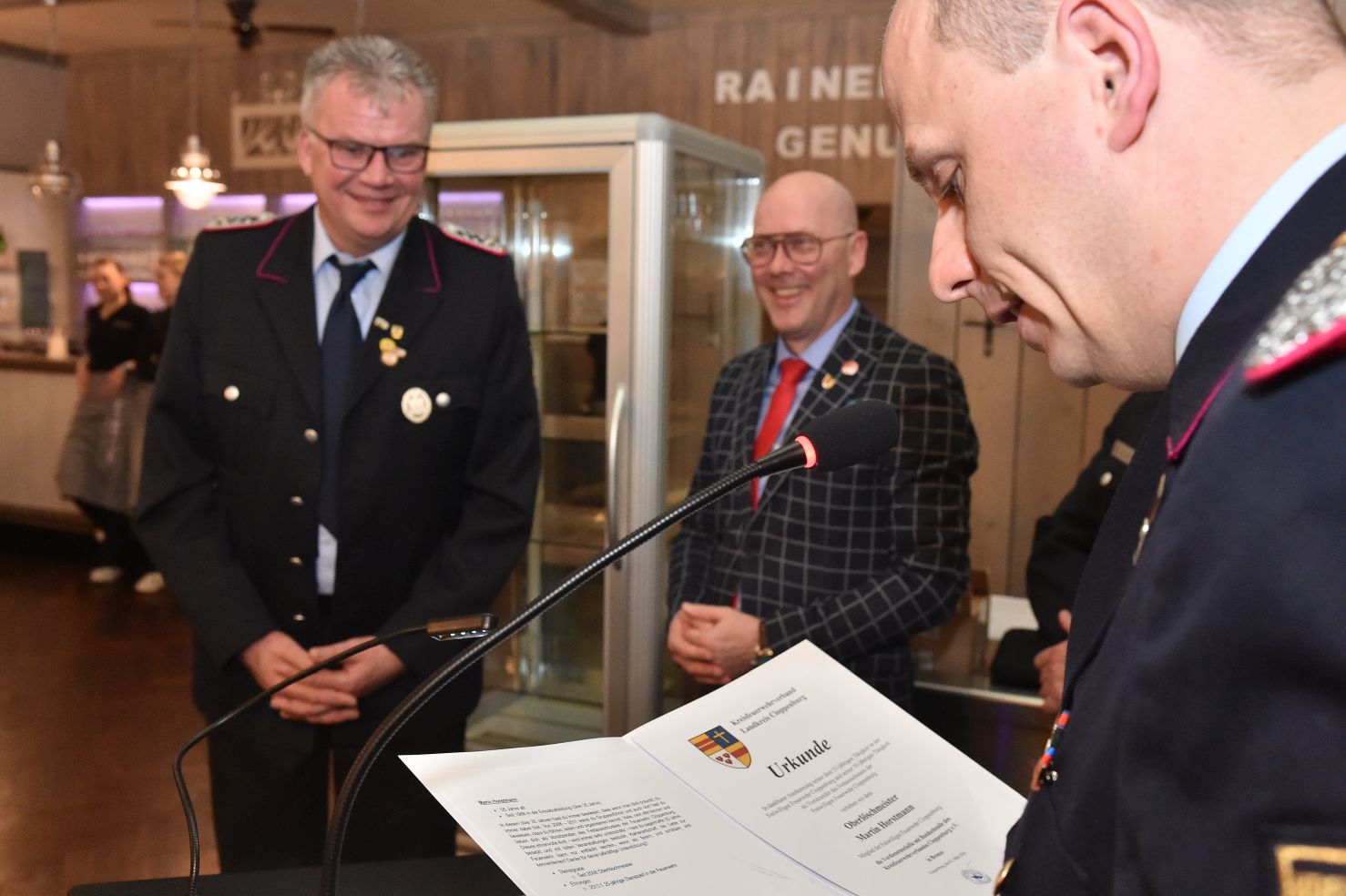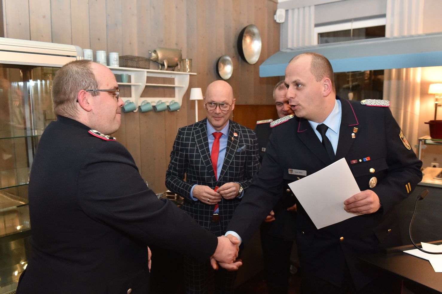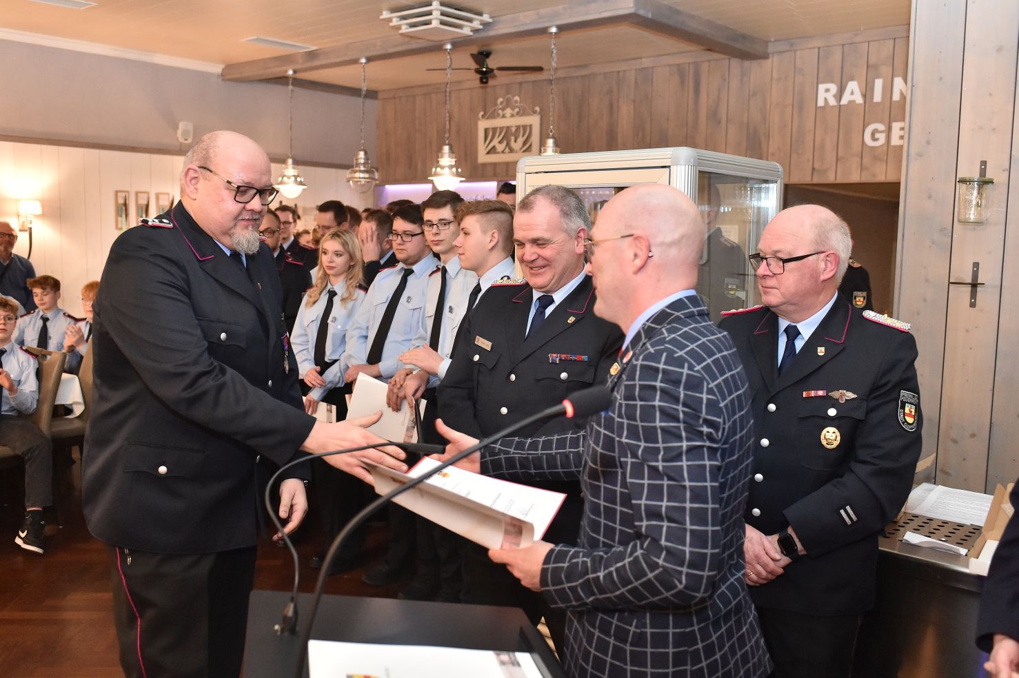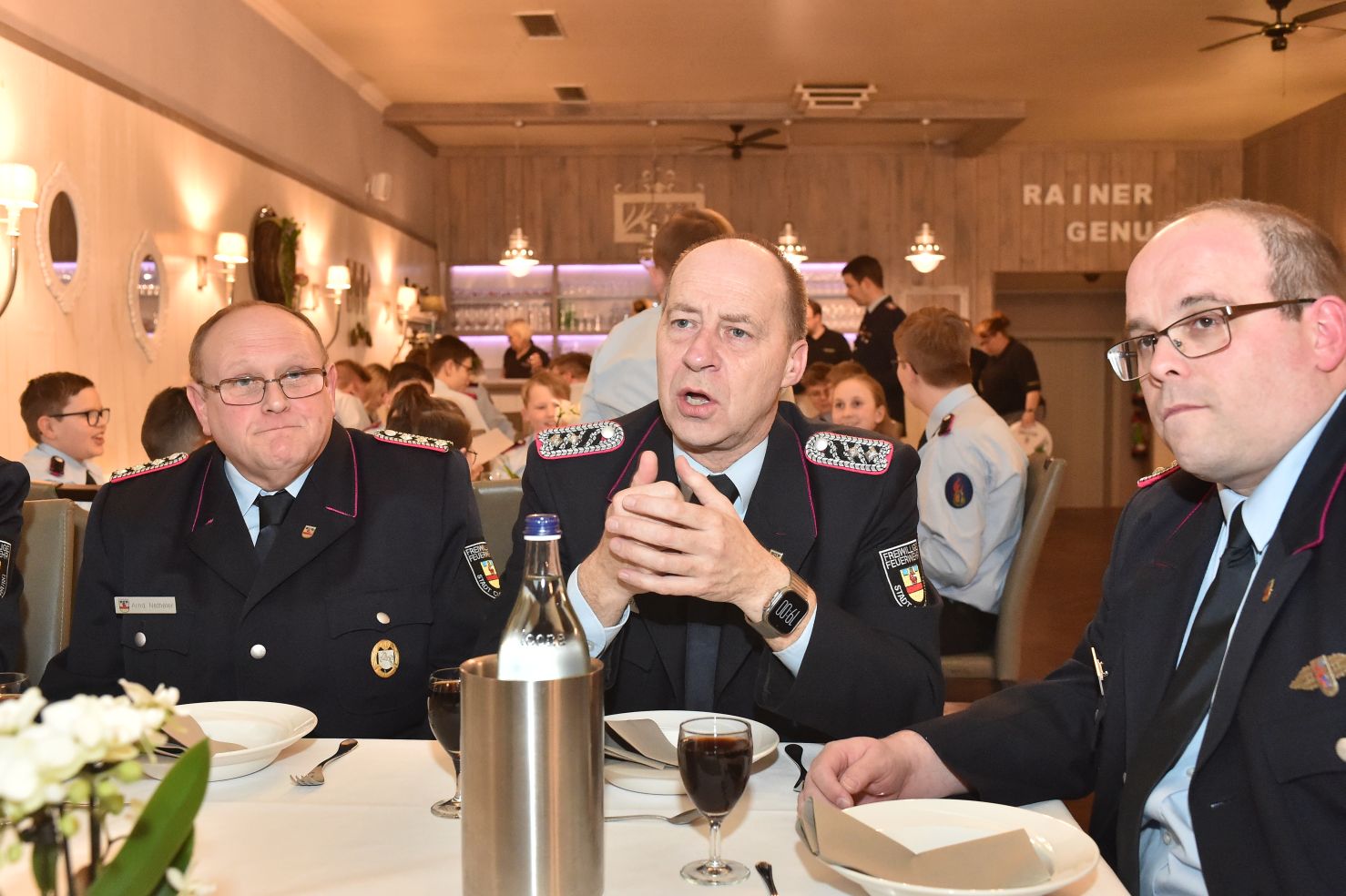 Wer meint, Jahresversammlungen sind öde und langweilig, der war noch nie auf unserer Generalversammlung. Hochkarätige Redner, bestes Essen, prickelnde Getränke und überhaupt, fast alles was man sich nur wünschen kann. Was habe ich vergessen? Ach ja, die Gäste. Beste Gäste! Das halbe Rathaus war da. Der Verwaltungsvorstand und das Ordnungsamt, angeführt von Bürgermeister Neidhard Varnhorn. Wobei unser Bürgermeister ja eher Gastgeber als Gast ist. Egal! Das DRK war da, das THW und die Johanniter. Die Polizei und unsere beiden musikalischen Abteilungen. Unsere Ehrenmitglieder, alle drei, sowieso. Polizeipräsident a.D. Hans-Jürgen Thurau, Bürgermeister a.D. Dr. Wolfgang Wiese und Reinhard Riedel als ehemaliger Ordnungsamtsleiter waren unserer Einladung ebenfalls gefolgt.