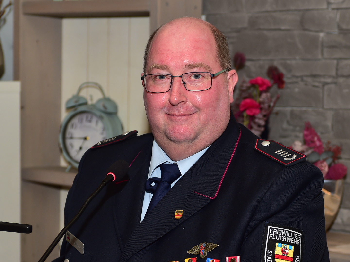 Und der Bürgermeister hat auch deutlich gemacht, dass die Investitionen nicht aufhören. Es geht weiter, unter anderem mit dem LF 20. Es wird gerade sozusagen endgefertigt. Die Ausrüstung des Fahrzeugs ist schon beim Hersteller. Es geht also voran. Wir werden weiter investieren in neue Einsatzkleidung und auch in neue Uniformen.