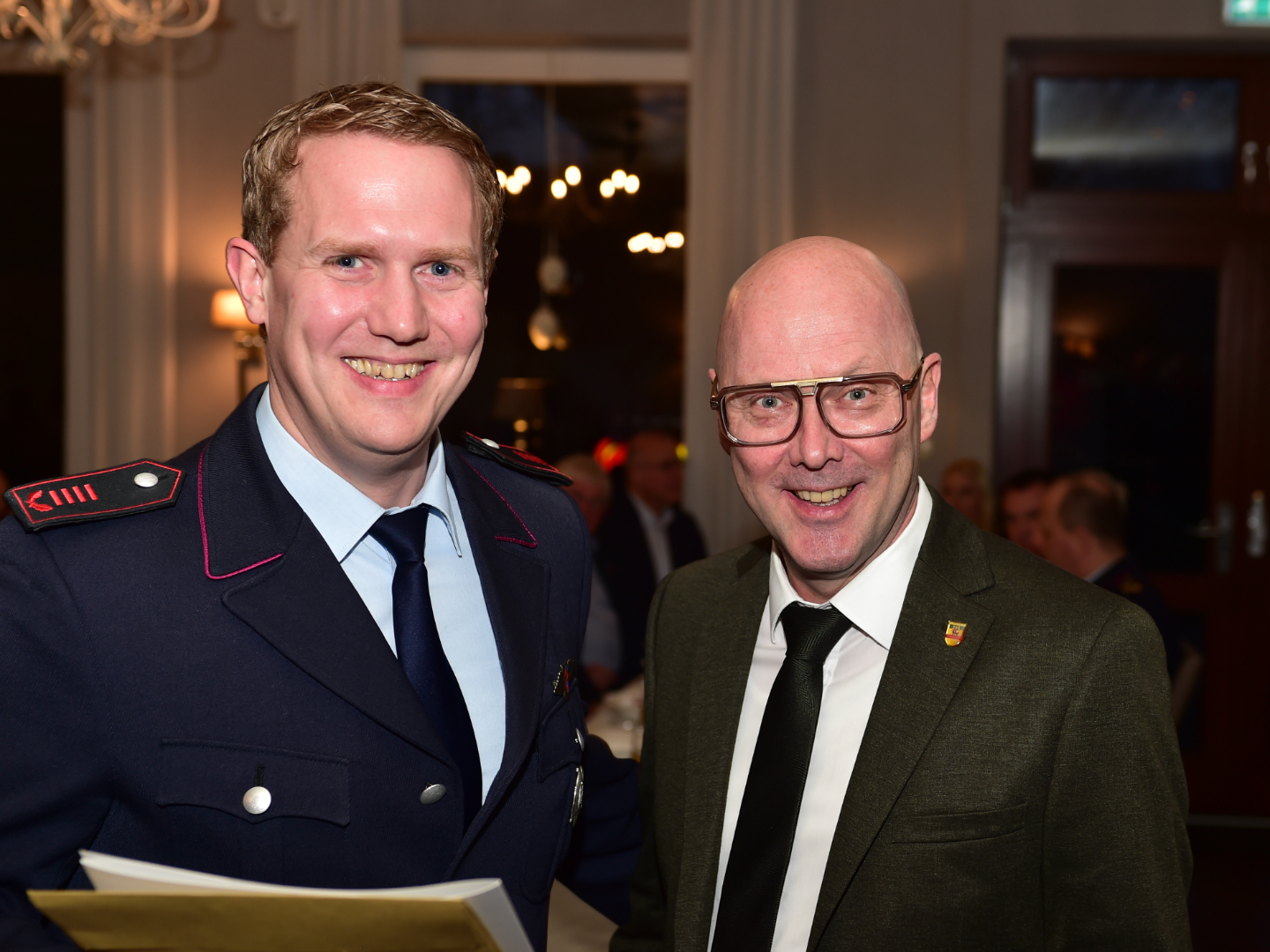 Was darf auf keiner Generalversammlung fehlen, ebenso wenig wie die obligatorischen Rouladen zu jedem Menü? Na klar, die Beförderungen. Davon gab es auch in diesem Jahr einige. Und ganz wichtig natürlich auch die Aufnahmen in die Wehr und die Übernahmen aus der Jugendfeuerwehr. Das sind immer besonders schöne Momente, weil man da eben sieht, dass da etwas nachkommt und dass sich die ganze Nachwuchsarbeit nicht nur in einem sozialen Sinne lohnt, sondern auch bei uns. Der Laden läuft, wir haben Zulauf und die Kinderfeuerwehr und die Jugendfeuerwehr sind dafür enorm wichtig. Die beiden sind wichtiger Teil unserer Zukunft. Die Namen haben wir euch hinten angehängt.