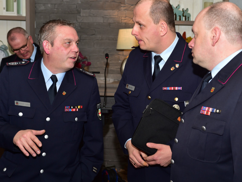 Natürlich gab es auch dieses Jahr wieder Beförderungen. Und dazu in diesem Jahr etwas ziemlich Exotisches, hatten wir so auf einer Generalversammlung auch noch nicht: Umwidmungen. Wir haben ja ein neues Dienstgradsystem. Nicht jeder ist davon restlos begeistert, aber es ist, wie es ist. Und so wird dann aus dem Hauptlöschmeister plötzlich der Hauptbrandmeister. Tja, die Qualifikation, Ausbildung und persönliche Fähigkeiten bleiben gleich, die Bezahlung übrigens auch, die gibt es natürlich nach wie vor nicht.