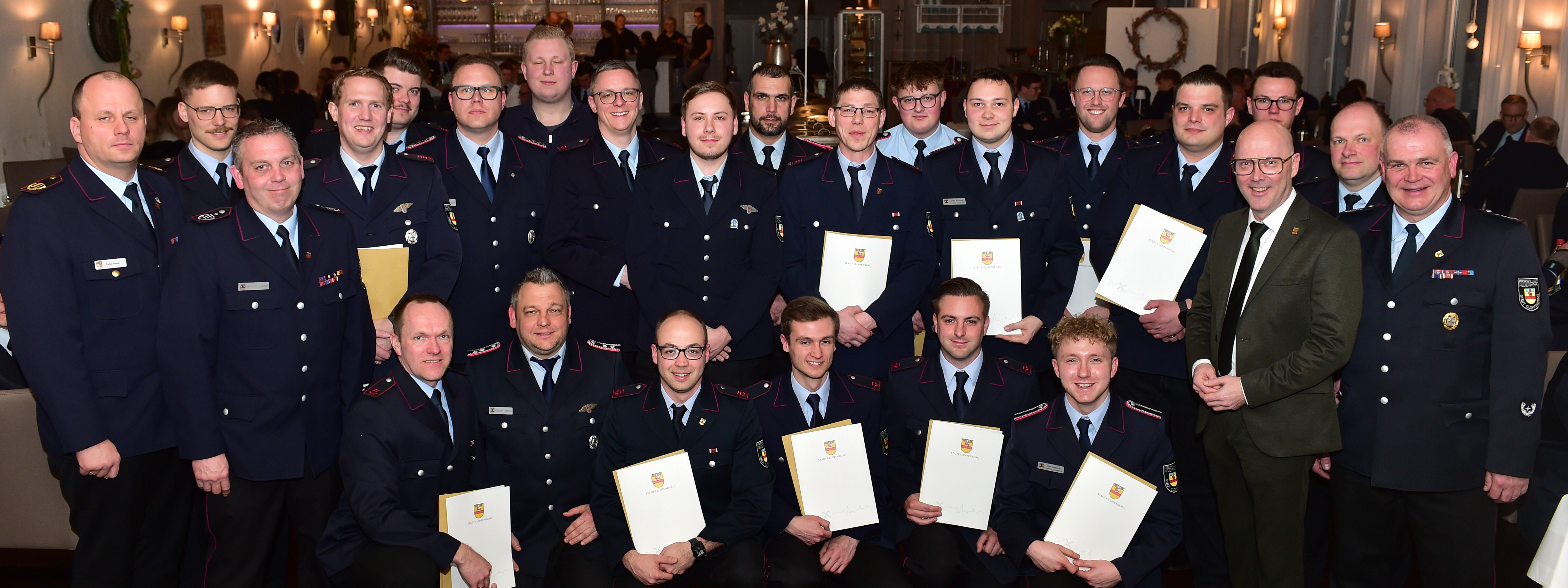 Wenn sich am Samstagabend rund 150 Männer und Frauen im Saalbetrieb Maria Rast in Bethen zur Generalversammlung der Feuerwehr Cloppenburg versammeln, darunter der Bürgermeister, die ehrenamtlichen Bürgermeister, der Verwaltungsvorstand der Stadt, das Ordnungsamt, der Polizeidirektor, Vertreter von THW, DRK und Johannitern, dazu Feuerwehrspielmannszug, Feuerwehrkapelle, Kinderfeuerwehr, Jugendfeuerwehr, Altersabteilung und natürlich die aktive Feuerwehr, dann ist klar: Es ist wieder Generalversammlung der Feuerwehr Cloppenburg.