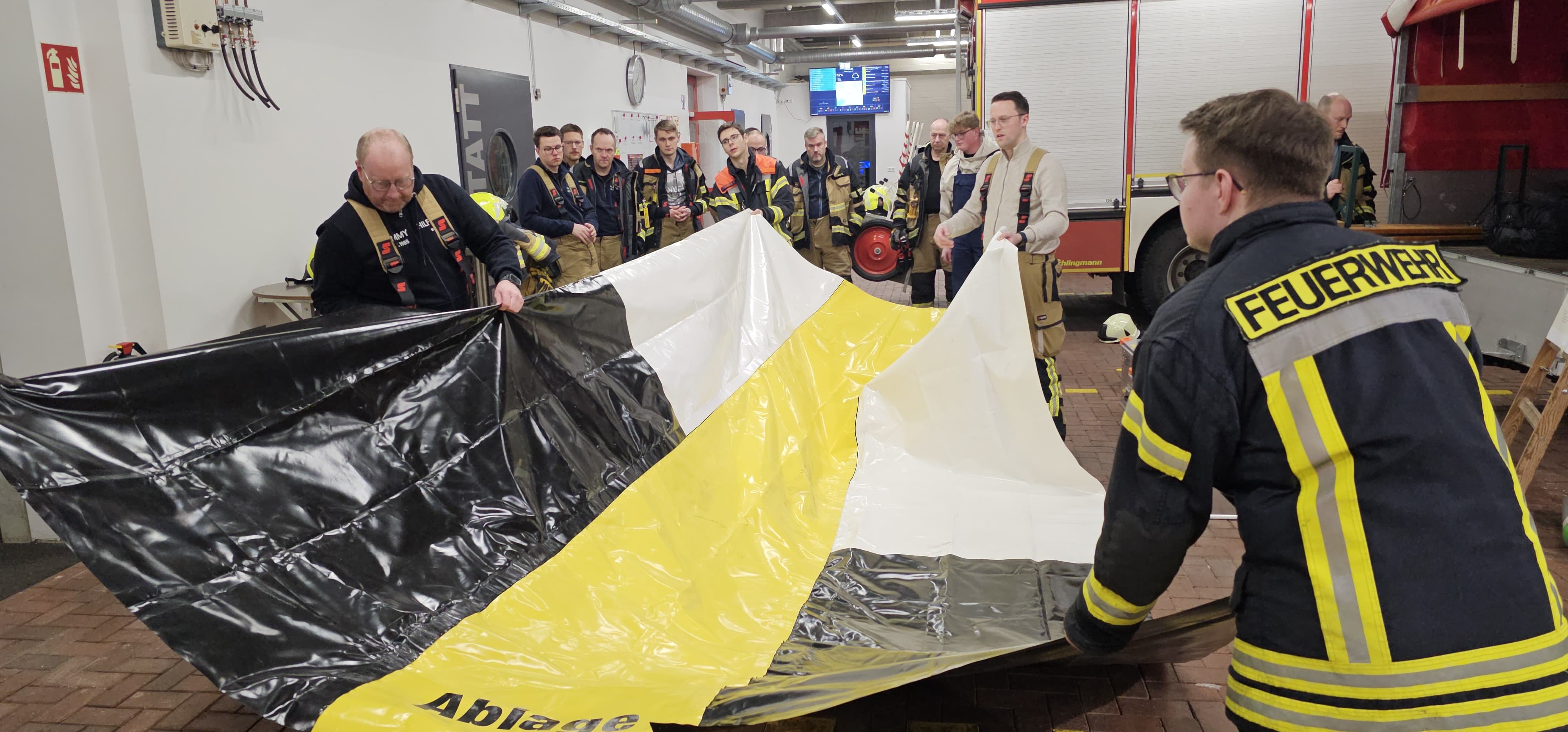 Auf einem Dienstabend im Februar haben uns Stefan Middendorf und Marcel Klitte uns das feuerwehrinterne Hygienekonzept vorgestellt. Dabei geht es darum, schwer kontaminierten Einsatzkräften sauber aus der verschmutzten Kleidung zu helfen und sich dabei selbst möglichst wenig zu gefährden.