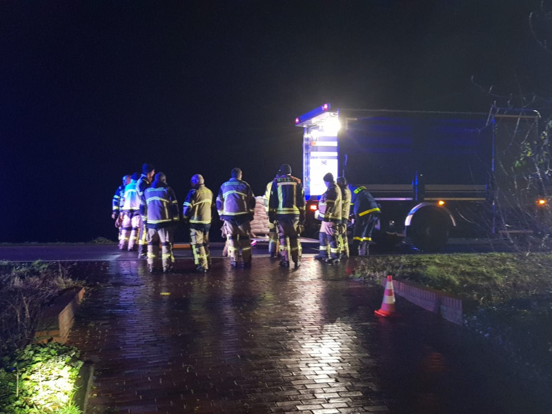 Am heutigen Tage erfolgte der zweite Einsatz für uns. An einem Wohnhaus drohte durch benachbarte Ackerflächen sowie vollgelaufene Gräben das Wasser ins Wohnhaus zu laufen. Wir sicherten mittels Sandsäcke die Türen ab, die dazu gerufene Strassenmeisterei hat mit ihrem Bagger den Graben frei geschaufelt.