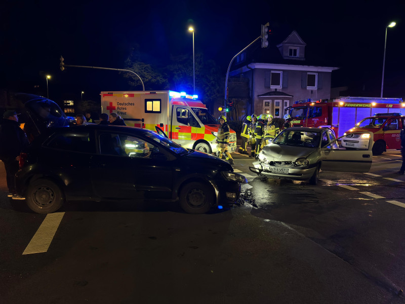 An der Kreuzung Fritz-Reuter Straße / Sevelter Straße waren zwei Fahrzeuge frontal zusammengestoßen. Nach ersten Meldungen wurde ein Fahrzeugbrand als Folge des Unfalls gemeldet. Aufgrund der kurzen Anfahrt konnte schnell Entwarnung gegeben werden. Dies bestätigte sich zum Glück nicht. Bei dem Zusammenstoß wurde niemand in seinem Fahrzeug eingeklemmt.