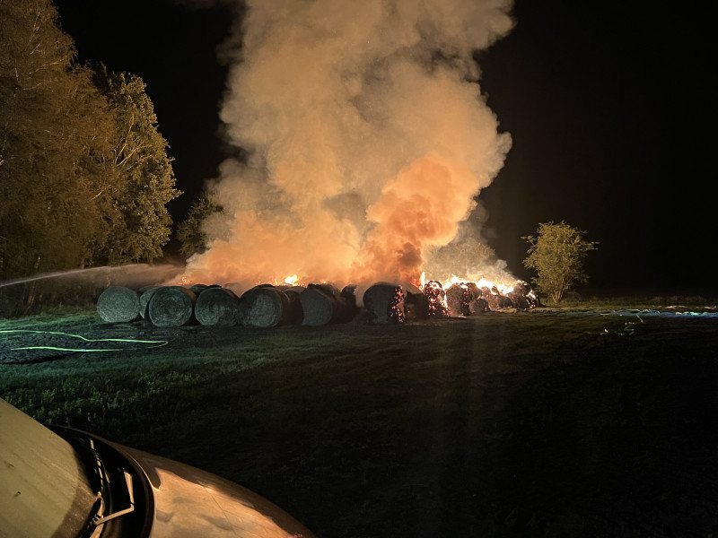 In der Nacht zu Freitag, 24. Mai 2024, 01:20 Uhr, bemerkte ein Zeuge, auf einem Feld am Wellensdamm, in der Nähe des Plaggenwegs, dass mehrere Strohballen in Brand stehen. Er alarmierte daraufhin den Notruf. Die Freiwillige Feuerwehr Cloppenburg rückte sodann mit mehreren Fahrzeugen und rund 30 Einsatzkräften zum Brandort aus und konnte die Rundballen löschen und das Übergreifen der Flammen auf angrenzende Bäume verhindern. Dennoch wurden ca. 100 Ballen vollständig zerstört, der Schaden beläuft sich auf rund 2500 Euro. Da die genaue Brandursache vor Ort nicht festgestellt werden konnte, wurde der Brandort von der Polizei beschlagnahmt, die Ermittlungen zur Brandursache werden heute weitergeführt. Zeugen, die Hinweise zum Brand geben können, werden gebeten, sich mit der Polizei in Cloppenburg, Tel. 04471-18600 in Verbindung zu setzen.