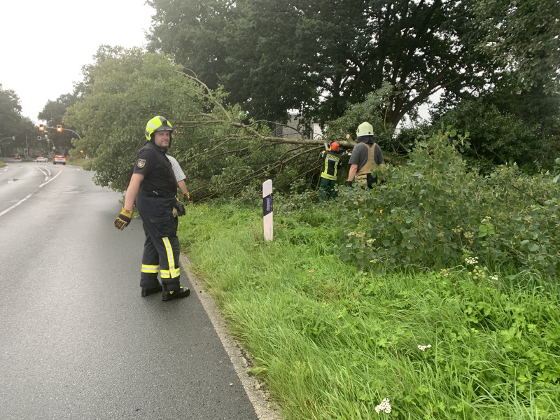 Am Mittwochnachmittag um 15.41 Uhr führte uns der zweite Einsatz auf die Löninger Straße. Dort war ein Baum durch Sturmböen umgestürzt und ragte mit der Krone auf die Straße. Mit der Motorsäge zerkleinerten wir die Baumkrone und sicherten zusätzlich die Einsatzstelle ab. Nach 30 Minuten war der Einsatz für uns beendet.