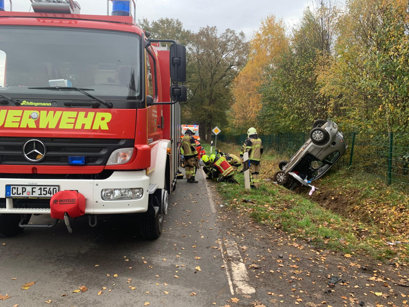 Am Montag, den 28.10.2024, kam es gegen 10:23 Uhr zu einem schweren Verkehrsunfall im Kreuzungsbereich des Bührener Rings mit der Resthauser Straße. Nach ersten Erkenntnissen vor Ort befuhr der Fahrer (36 J., Cloppenburg) eines PKWs (Opel) mit zwei weiteren Insassen (weiblich, 35 J. und weiblich, 3 J., Cloppenburg) den Bührener Ring in Fahrtrichtung Resthauser Straße. Um der Straße weiter zu folgen beabsichtigte er, die Resthauser Straße zu überqueren. Hierbei übersah er eine von rechts kommende und vorfahrtsberechtigte 58-jährige PKW-Fahrerin (VW) aus Lindern. Im Kreuzungsbereich kam es zum Frontalzusammenstoß beider Fahrzeuge. Der PKW der Frau aus Lindern wurde durch den Aufprall in einen angrenzenden Graben geschleudert und kam auf dem Dach liegend zum Stillstand. Die Freiwillige Feuerwehr Cloppenburg musste entgegen der ersten Annahme, dass die Frau eingeklemmt sei, nicht mehr eingreifen. Die Insassen des Opels wurden im Ergebnis leicht, die Fahrerin des VWs schwer verletzt. Im Anschluss wurden die Beteiligten umliegenden Krankenhäusern zugeführt.