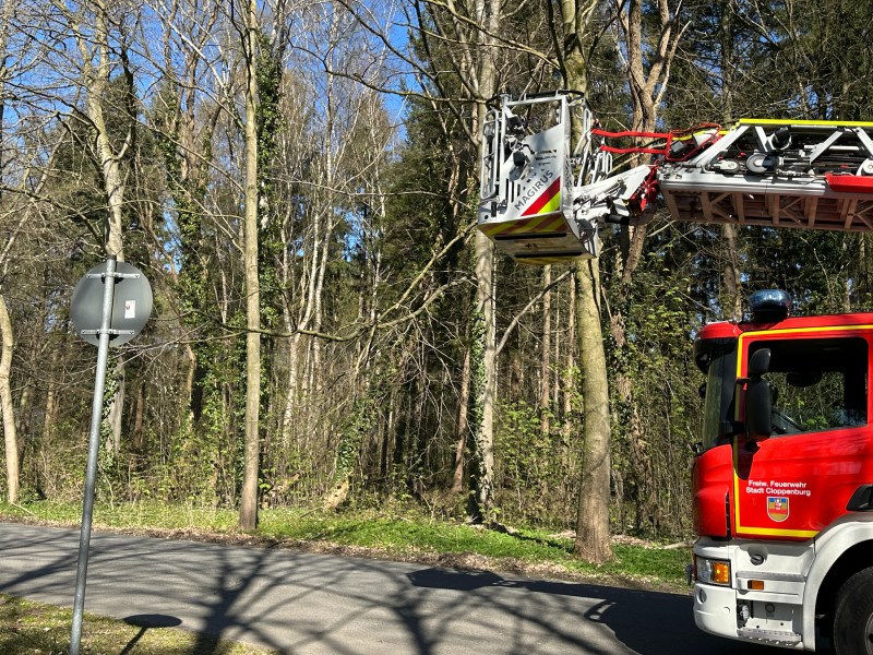 Am Sonntagnachmittag wurden wir zum zweiten Einsatz alarmiert. An der alten Friesoythe Straße droht ein Ast aus einem Baum heraus zu brechen. Mittels Motorsäge und Drehleiter wurde die Schadenstelle beseitigt. Nach einer halben Stunde konnten wir die Heimreise antreten.