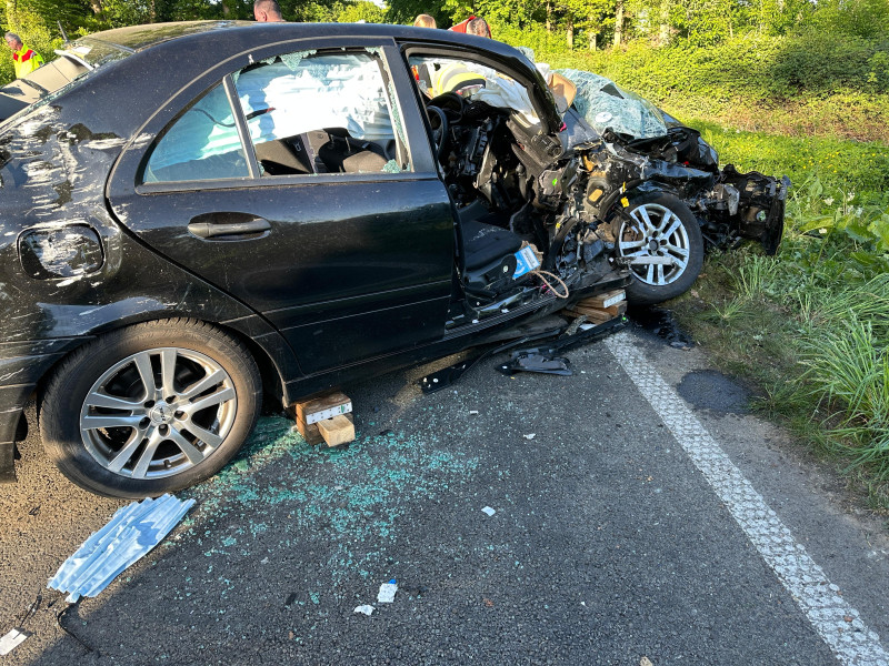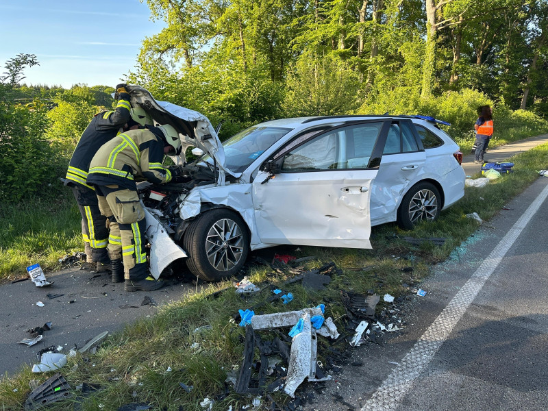 Schwerer Verkehrsunfall auf der B213 – sechs Verletzte, darunter ein Eingeklemmter