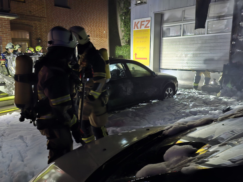 Brand eines PKW am Gebäude – Werkstatt rechtzeitig geschützt