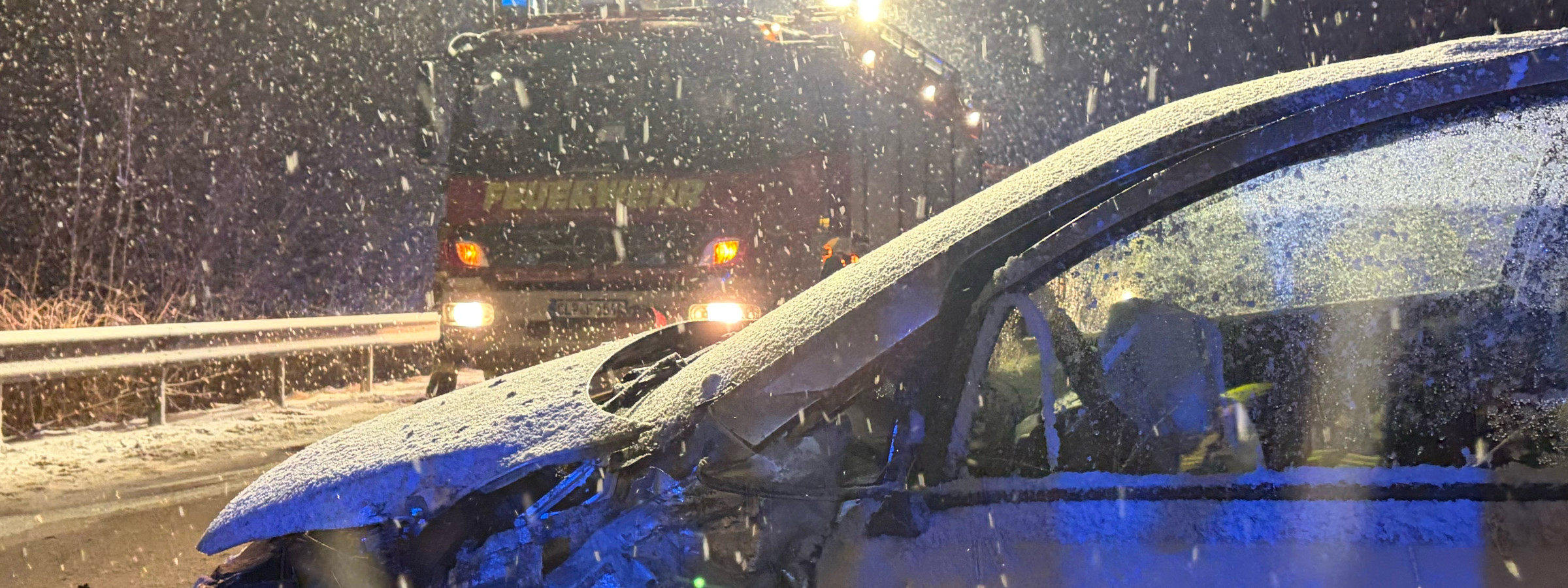 In den frühen Morgenstunden wurden wir zu einem Verkehrsunfall auf die B72 alarmiert. Zwischen den Anschlussstellen Cloppenburg-Bethen und Cloppenburg-Ost war es bei anhaltendem Schneetreiben und glatten Fahrbahnbedingungen zu einem Verkehrsunfall gekommen. Laut Erstmeldung sollte eine Person in ihrem Fahrzeug eingeschlossen sein, weshalb der bereits vor Ort befindliche Rettungsdienst die Feuerwehr zur technischen Rettung nachforderte.