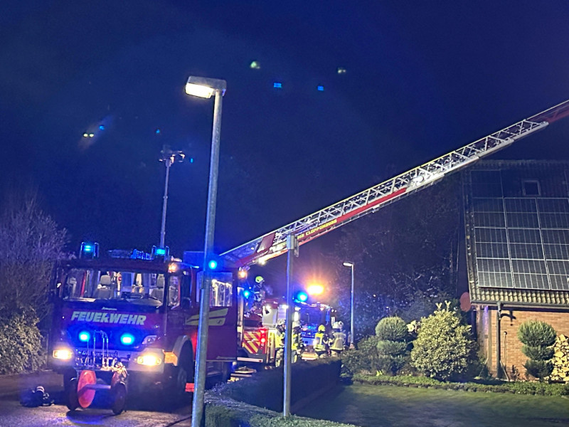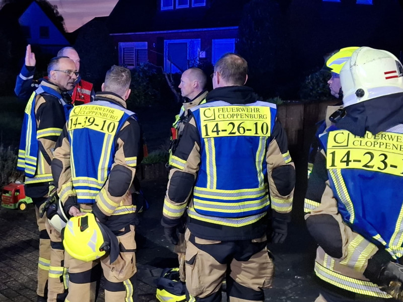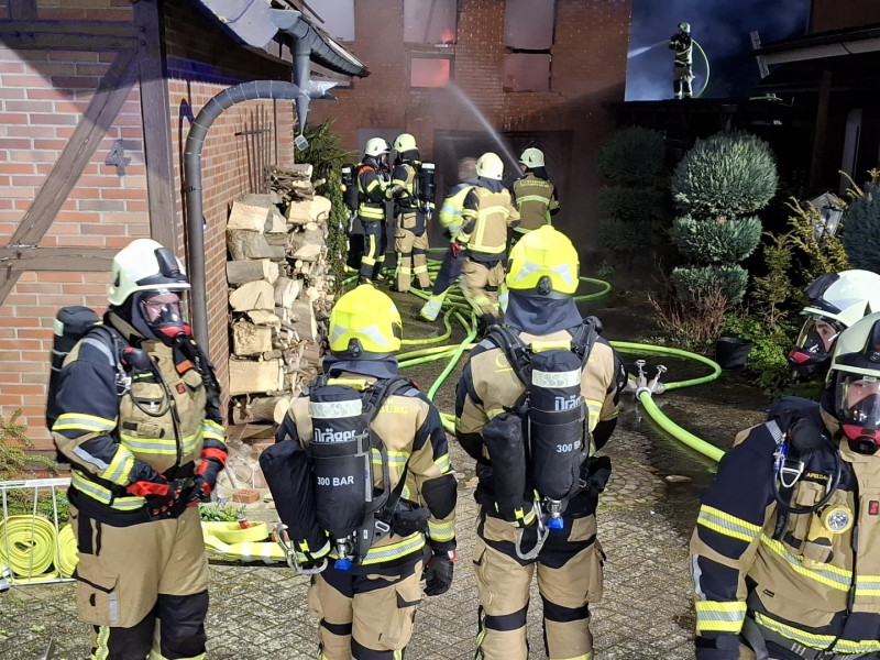 In den frühen Morgenstunden wurden wir zunächst zu einem Garagenbrand in den Ortsteil Emstekerfeld alarmiert. Doch bereits während die ersten Kameraden auf Anfahrt zum Feuerwehrhaus waren, änderte sich die Lage: Den ersten Einsatzkräften wurde gemeldet, dass das Feuer bereits auf den Dachstuhl eines Anbaus übergegriffen hatte.