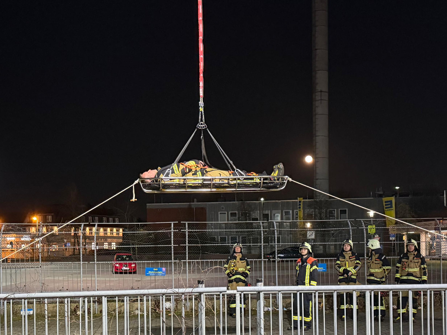 Die dritte Gruppe widmete sich dem Thema Schachtrettung. Hierbei wurde der sichere Umgang mit der Drehleiter trainiert, um Personen aus tiefer gelegenen Schächten oder ähnlichen Einsatzstellen retten zu können. Solche Einsatzlagen erfordern ein besonders koordiniertes Vorgehen sowie den sicheren Umgang mit der eingesetzten Technik.