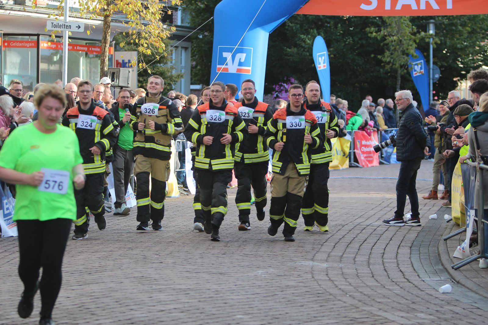 Ein ganz normaler Dienstabend. Mehrere Feuerwehrkameraden hatten die Idee, mal ihre Fitness zu testen – und das nicht mit einem gemütlichen Spaziergang, sondern mit dem jährlichen Citylauf. Natürlich nicht in ihren bequemen Jogginganzügen, sondern in voller Einsatzkleidung. Und zack, die ersten Teilnehmer haben sich gemeldet und wir haben den Plan realisiert. Sie entschieden sich für den Sechs-Kilometer-Lauf. So stand der Plan. Dann kamen vier Leute aus der Runde und haben vorgeschlagen, dass wir doch den Staffellauf mit Atemschutz machen könnten. Manchmal sind spontane Ideen die besten. Gesagt, getan.