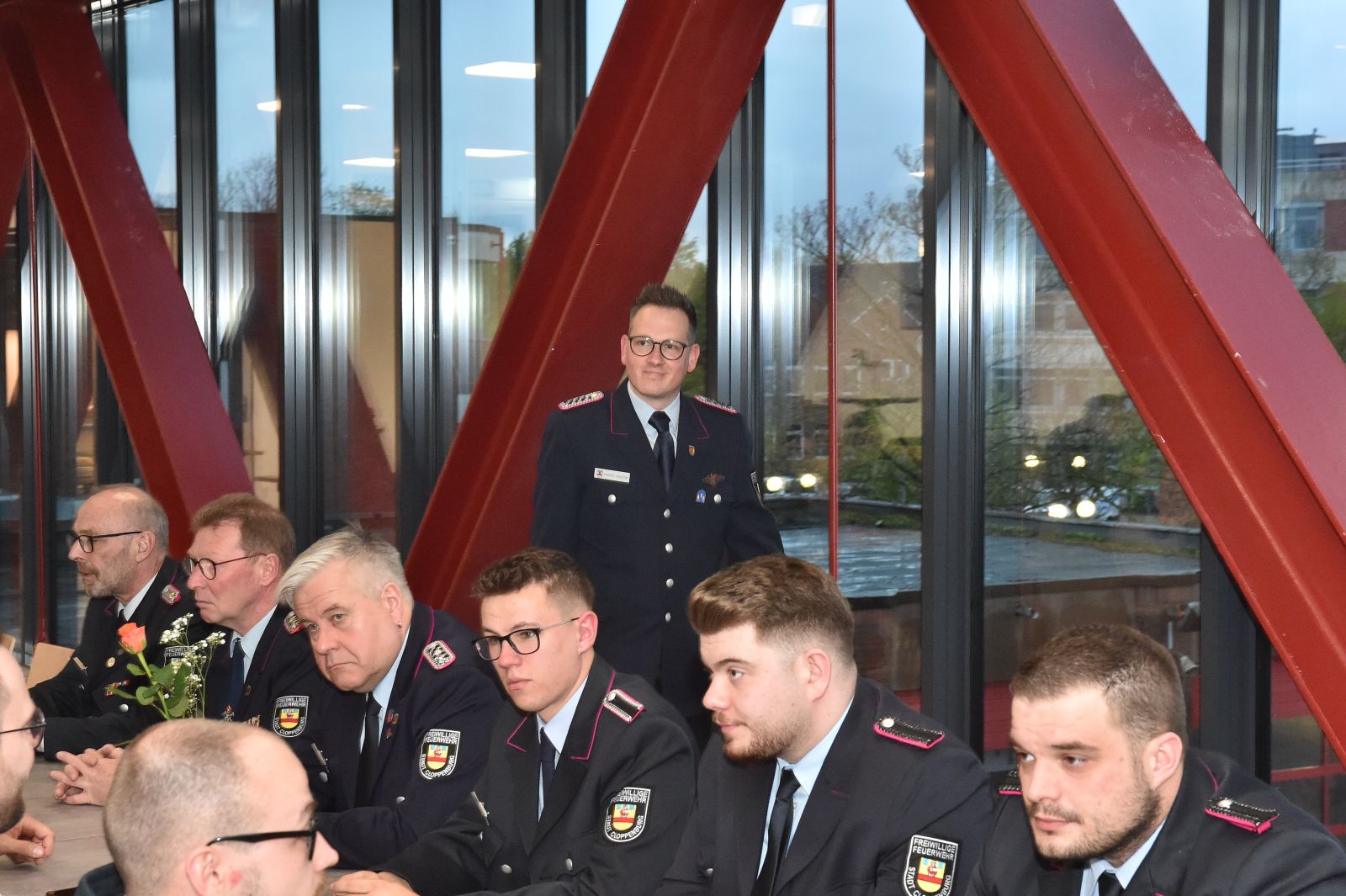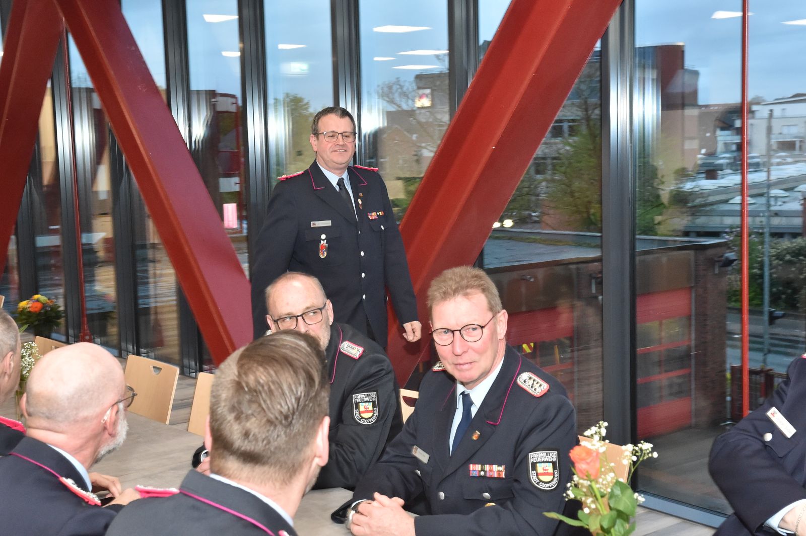 Der Bürgermeister war da, und wir waren alle schick in Uniform. Drei Kameraden galt es für langjährige Dienste in der Feuerwehr zu ehren. Der erste feierliche Anlass im neuen Versammlungsraum.