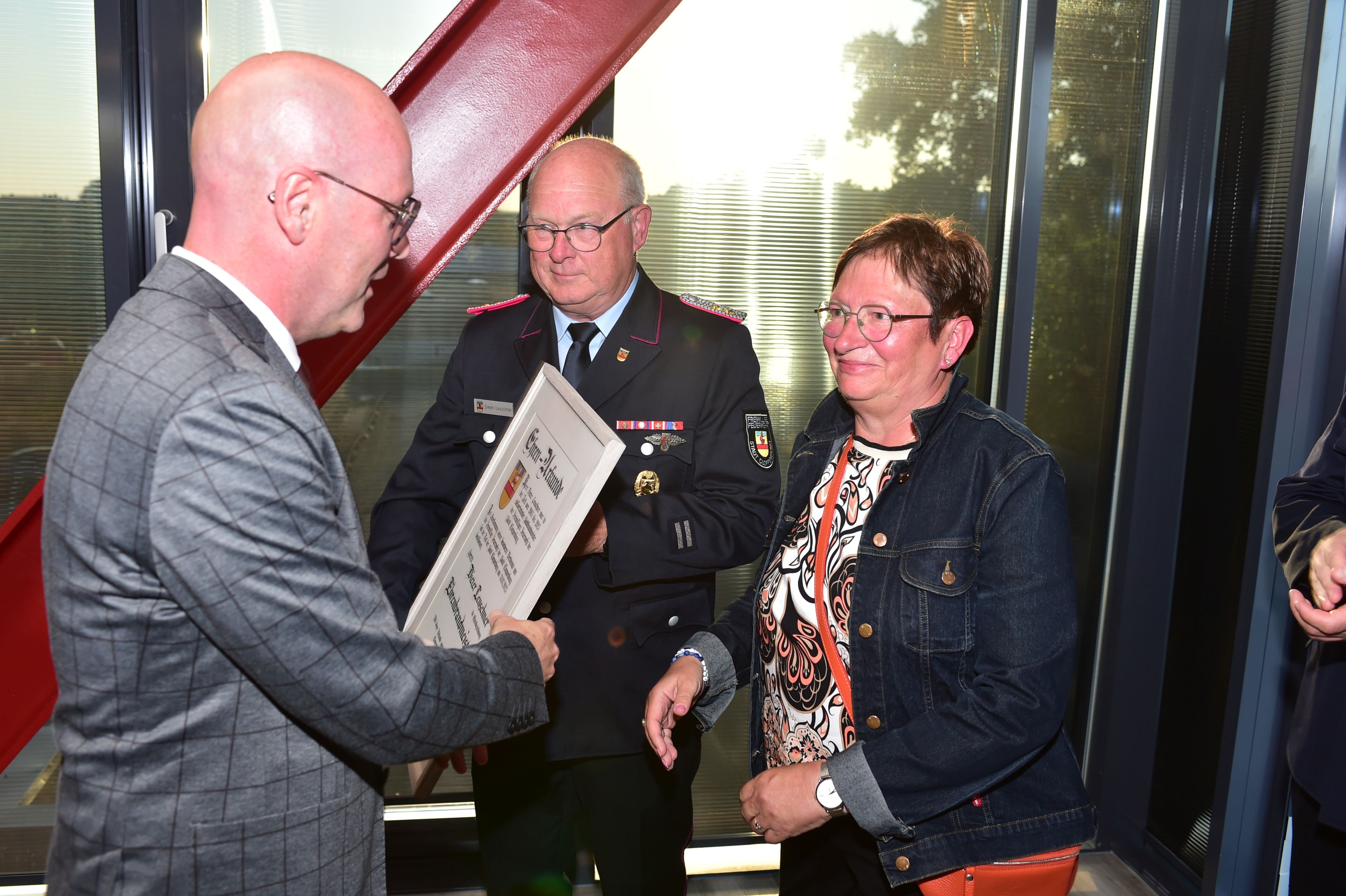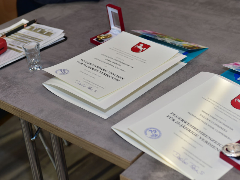 Dieter erschien in Begleitung seiner Frau Mechtild. Man konnte ihm die Rührung deutlich ansehen, als er die kunstvoll gestaltete Urkunde aus den Händen des Bürgermeisters entgegennahm. Der Applaus war anhaltend, die Glückwünsche herzlich. Dieter ist damit der zweite Ehrenbrandmeister der Feuerwehr Cloppenburg – nach Kurt Lade, dem Vater des heutigen Stadtbrandmeisters Horst Lade.