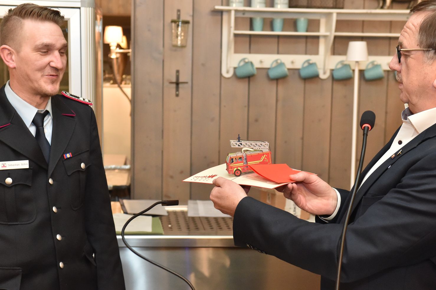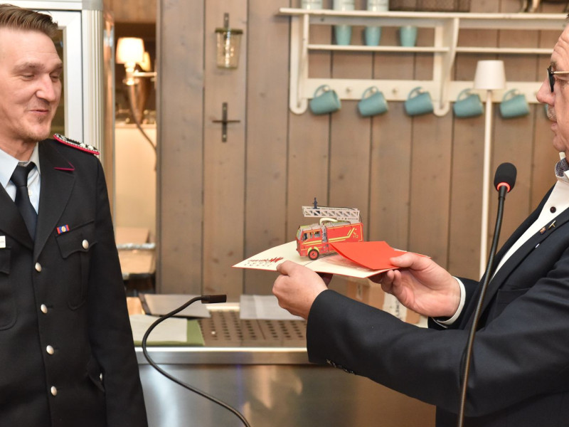 Seinem „legendären“ Spruch „Der Onkel mit dem Geschenk, ist besser als die Tante, die Klavier spielen kann“, blieb Dr. Wiese treu. Stellvertretend für unsere drei Ehrenmitglieder hatte er ein hübsches Geschenk, flach und praktisch, für die Kinderfeuerwehr in der Jackentasche.