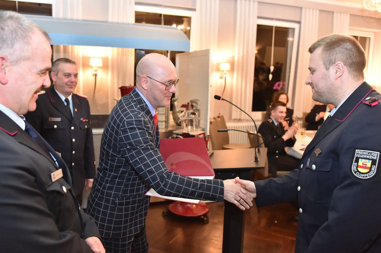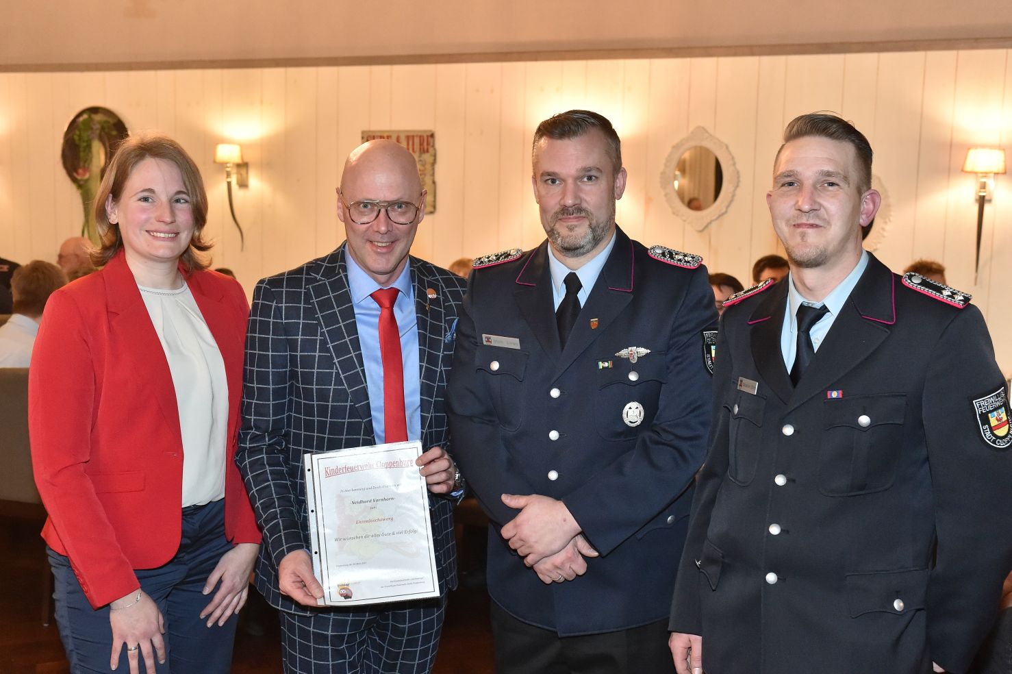 Überhaupt - Bürgermeister lieben Feuerwehr, so ist zumindest unser Eindruck in Cloppenburg. Warum das so ist, konnten wir Neidhard Varnhorns Rede entnehmen. Er hat ja Recht, wenn er feststellt, dass wir immer da sind, auch in der Nacht und auch, wenn es mal länger dauert. Wohlwollende Adjektive an allen Ecken. Das tut uns gut. Vor allem, weil es keine schöne Samstagabendrede ist, sondern auch im Alltag gelebt wird. Wir werden von der Stadt gut ausgestattet, fortgebildet und vor allem auch geschätzt.