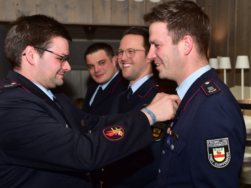 Was darf auf keiner Generalversammlung fehlen, ebenso wenig wie die obligatorischen Rouladen zu jedem Menü? Na klar, die Beförderungen. Davon gab es auch in diesem Jahr einige. Und ganz wichtig natürlich auch die Aufnahmen in die Wehr und die Übernahmen aus der Jugendfeuerwehr. Das sind immer besonders schöne Momente, weil man da eben sieht, dass da etwas nachkommt und dass sich die ganze Nachwuchsarbeit nicht nur in einem sozialen Sinne lohnt, sondern auch bei uns. Der Laden läuft, wir haben Zulauf und die Kinderfeuerwehr und die Jugendfeuerwehr sind dafür enorm wichtig. Die beiden sind wichtiger Teil unserer Zukunft. Die Namen haben wir euch hinten angehängt.