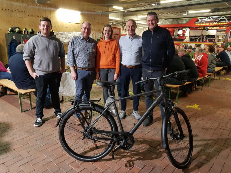 Zum Abschluß gab es noch eine Blitzverlosung. Wir hatten ein Fahrrad der Firma Kalkhoff gesponsort bekommen. Herzlichen Dank dafür. Die Stimmung in der Fahrzeughalle war angespannt ruhig als das Los gezogen wurde. Die Glückliche Gewinnerin konnte es gar nicht so recht glauben. Die Freude bei der Probetour war um so größer. Gute Fahrt Jana!